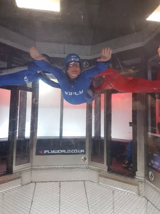 In preparation, Carl went to perform an indoor Skydive at iFly in Milton Keynes, Buckinghamshire. This experience replicates the sensation of weightlessness and spinning around in a 125-mph upward airstream.